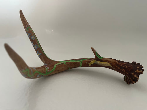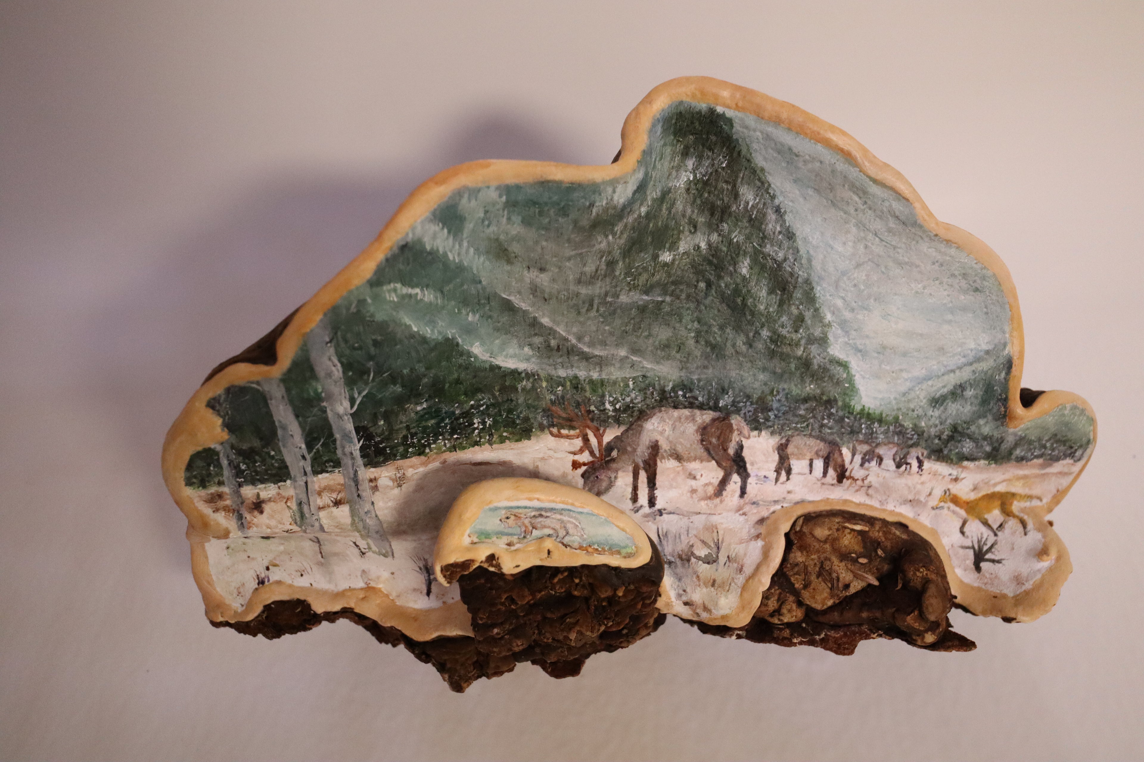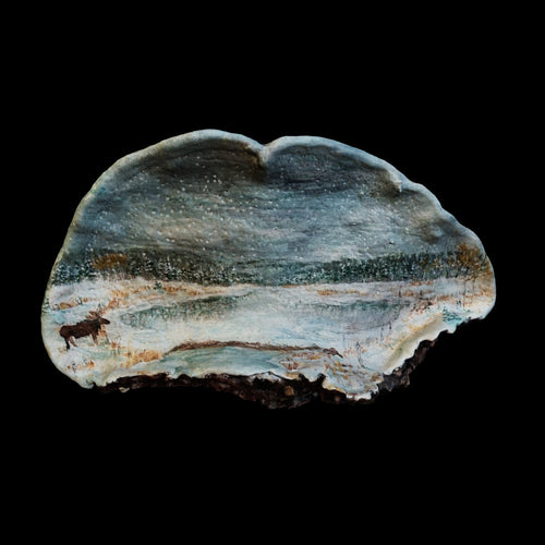 Wren is a nature-based artist living and working in Sitka, Alaska. Her work explores connection to the natural world through paintings created on sustainably harvested natural materials, including mushrooms and antlers. Deeply inspired by Alaska’s plants and animals, her art reflects the intricate relationships within wild ecosystems and invites viewers to slow down and observe the living world with care and curiosity.